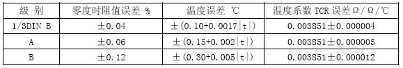 按IEC751國際標準,溫度系數TCR=0.003851,Pt100(R0=100Ω)、Pt1000(R0=1000Ω)為統一設計型鉑電阻。TCR=(R100-R0)/(R0×100),其中