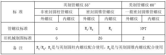 舊機械制圖標準與現行管螺紋代號的對應關系