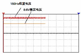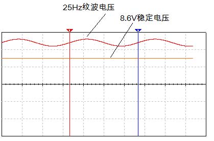 a、Vin輸入條件:電壓12V,Vpp=1V,紋波頻率25Hz。 用示波器測Vo=8.6V,見圖3。