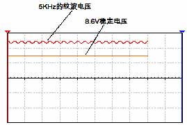 b、Vin輸入條件:電壓12V,Vpp=1V,紋波頻率5kHz。 用示波器測Vo=8.6V,見圖4。